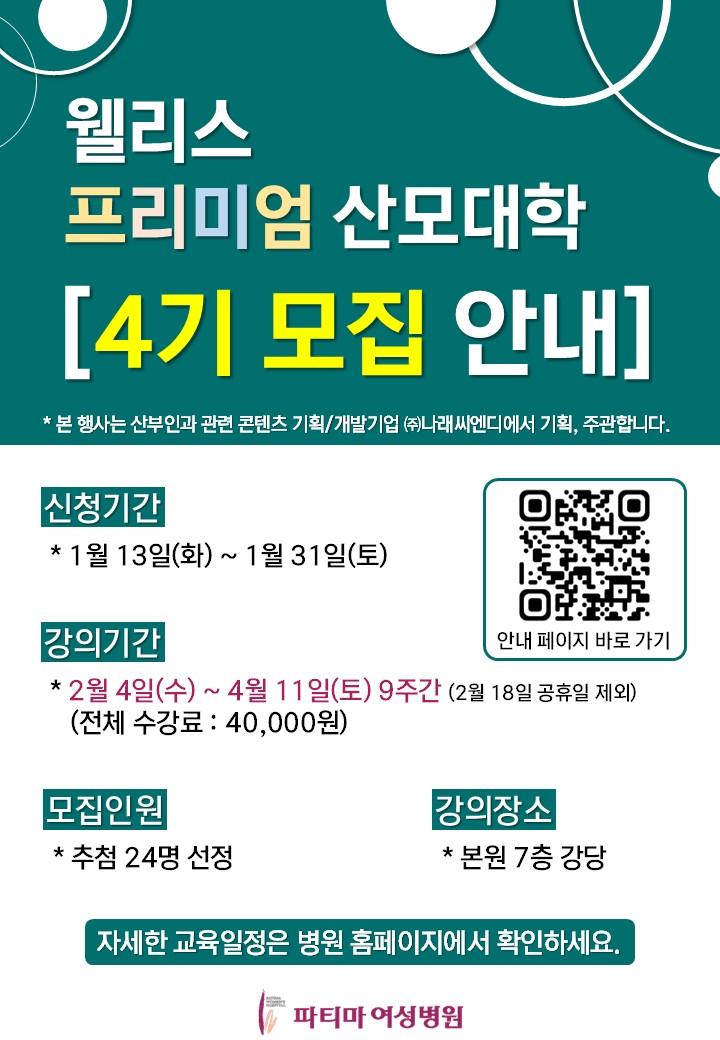 - 프리미엄 산모대학 4기 모집 안내